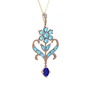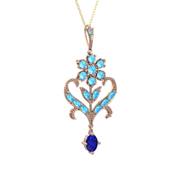 Akuamarin ve lab safir 8 ayar rose altın kolye (40 cm altın rolo zincir)
