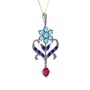 Akuamarin, lab safir ve rodolit garnet 14 ayar beyaz altın kolye (40 cm gümüş rolo zincir)