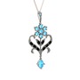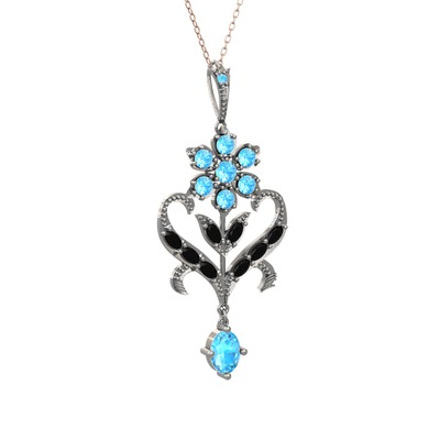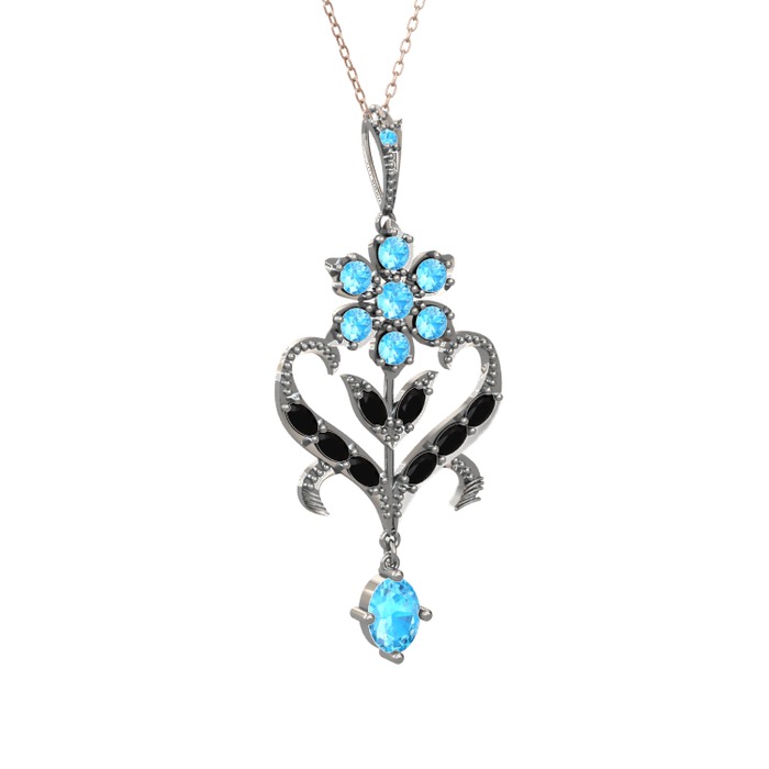 Akuamarin ve siyah zirkon 14 ayar beyaz altın kolye (40 cm rose altın rolo zincir)