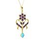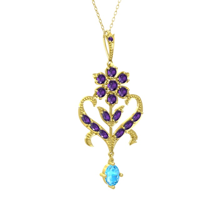 Ametist ve akuamarin 8 ayar altın kolye (40 cm gümüş rolo zincir)