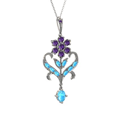 Ametist ve akuamarin 8 ayar beyaz altın kolye (40 cm beyaz altın rolo zincir)