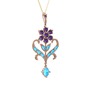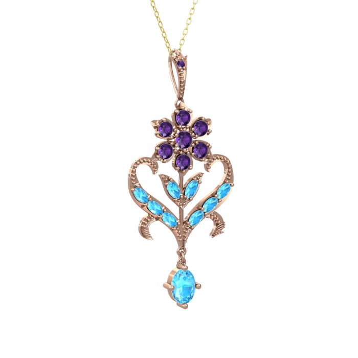Ametist ve akuamarin 925 ayar rose altın kaplama gümüş kolye (40 cm gümüş rolo zincir)