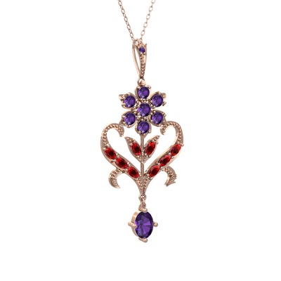Ametist ve garnet 8 ayar rose altın kolye (40 cm rose altın rolo zincir)