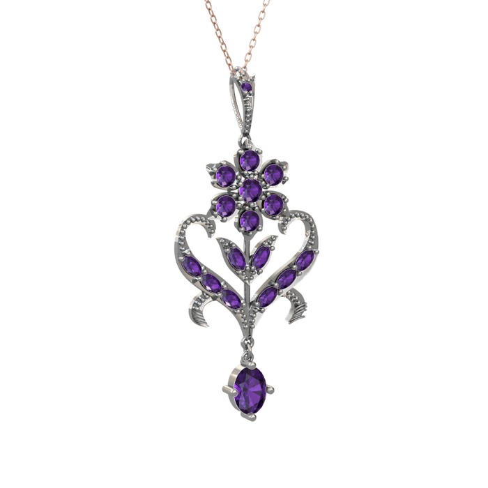 Ametist 925 ayar gümüş kolye (40 cm gümüş rolo zincir)