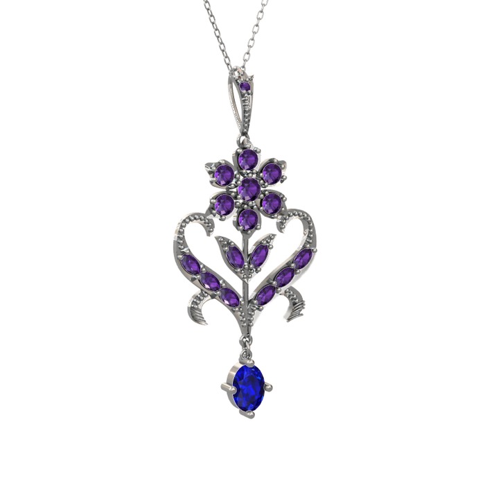 Ametist ve lab safir 14 ayar beyaz altın kolye (40 cm beyaz altın rolo zincir)