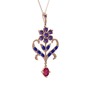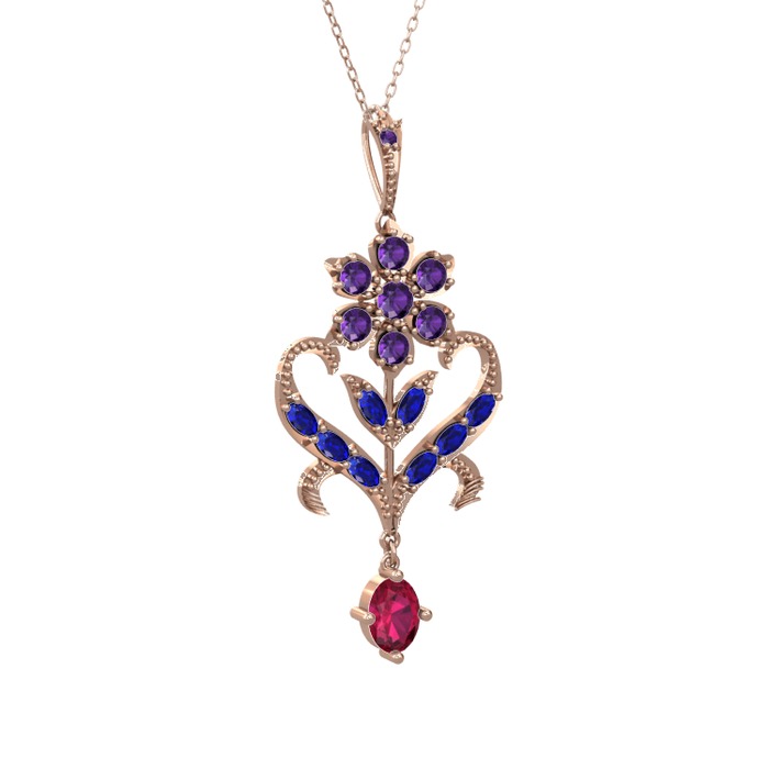 Ametist, lab safir ve rodolit garnet 14 ayar rose altın kolye (40 cm rose altın rolo zincir)