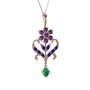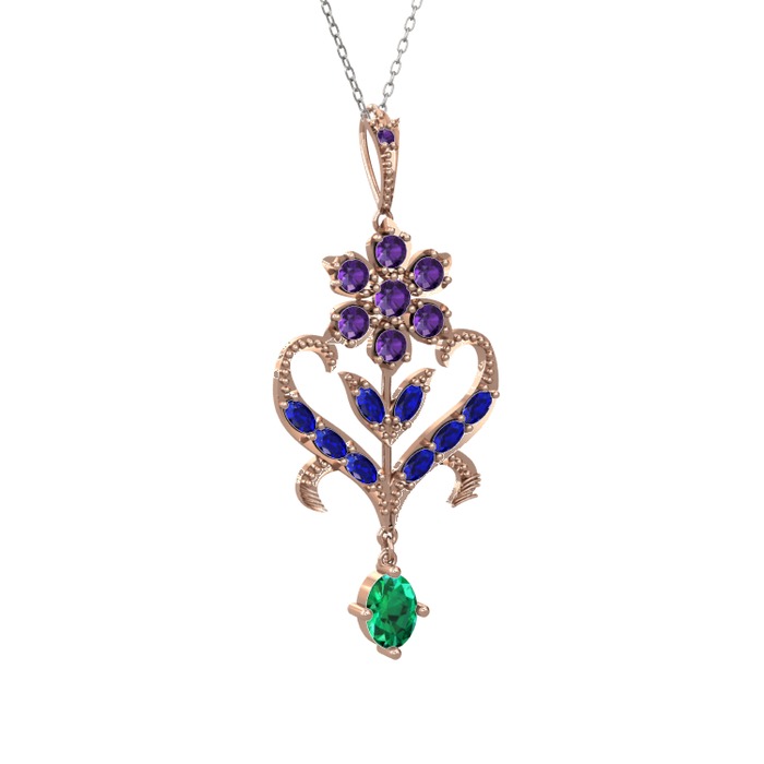Ametist, lab safir ve yeşil kuvars 14 ayar rose altın kolye (40 cm beyaz altın rolo zincir)