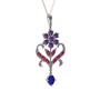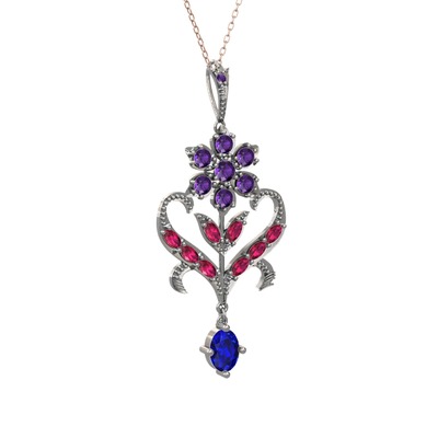 Ametist, rodolit garnet ve lab safir 14 ayar beyaz altın kolye (40 cm rose altın rolo zincir)
