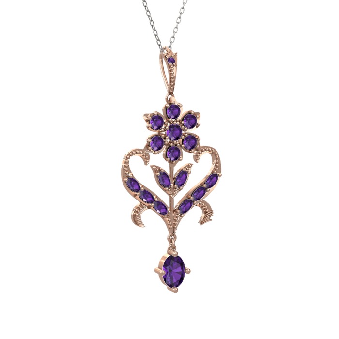 Ametist 925 ayar rose altın kaplama gümüş kolye (40 cm beyaz altın rolo zincir)
