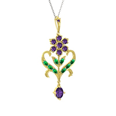 Ametist ve yeşil kuvars 8 ayar altın kolye (40 cm beyaz altın rolo zincir)
