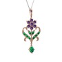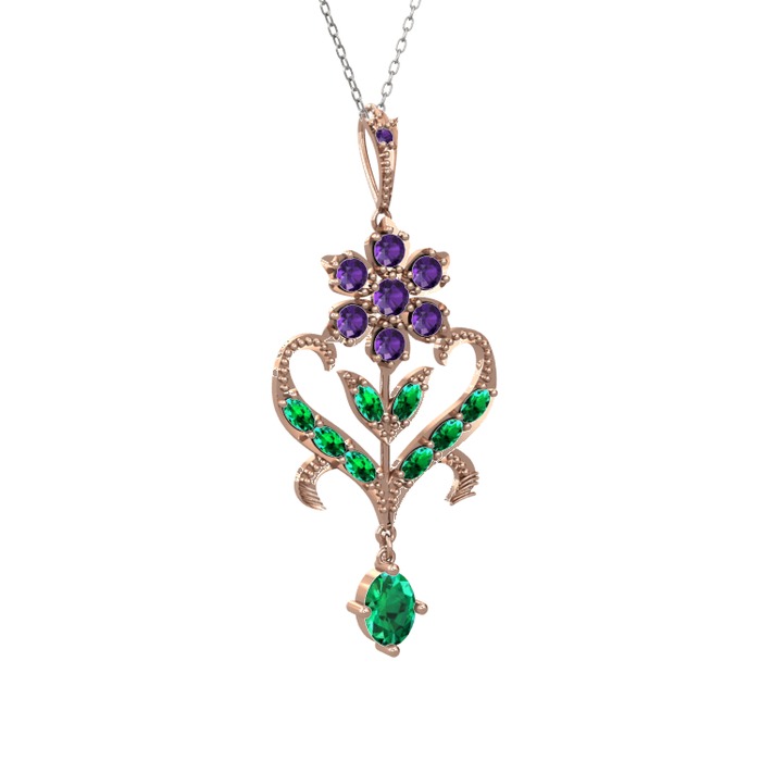 Ametist ve yeşil kuvars 925 ayar rose altın kaplama gümüş kolye (40 cm beyaz altın rolo zincir)