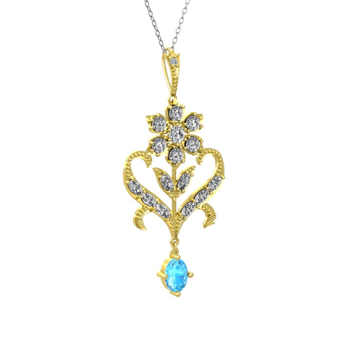 Beyaz zirkon ve akuamarin 8 ayar altın kolye (40 cm beyaz altın rolo zincir)