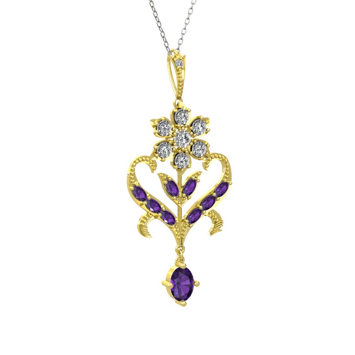 Beyaz zirkon ve ametist 8 ayar altın kolye (40 cm beyaz altın rolo zincir)