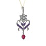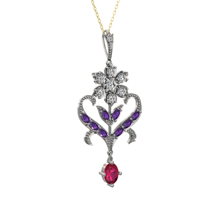 Beyaz zirkon, ametist ve rodolit garnet 8 ayar beyaz altın kolye (40 cm altın rolo zincir)
