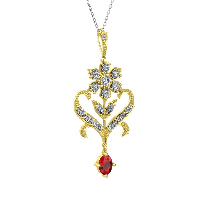 Beyaz zirkon ve garnet 14 ayar altın kolye (40 cm gümüş rolo zincir)