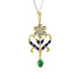 Beyaz zirkon, lab safir ve yeşil kuvars 8 ayar altın kolye (40 cm gümüş rolo zincir)