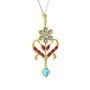 Beyaz zirkon, rodolit garnet ve akuamarin 925 ayar altın kaplama gümüş kolye (40 cm gümüş rolo zincir)