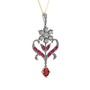 Beyaz zirkon, rodolit garnet ve garnet 925 ayar gümüş kolye (40 cm altın rolo zincir)
