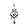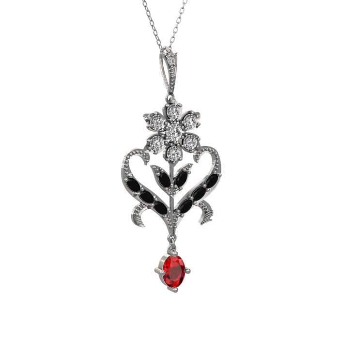 Beyaz zirkon, siyah zirkon ve garnet 14 ayar beyaz altın kolye (40 cm gümüş rolo zincir)