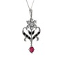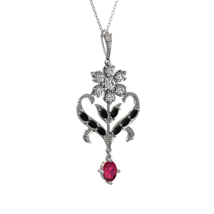 Beyaz zirkon, siyah zirkon ve rodolit garnet 14 ayar beyaz altın kolye (40 cm beyaz altın rolo zincir)