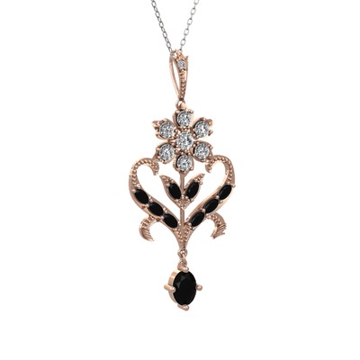 Beyaz zirkon ve siyah zirkon 925 ayar rose altın kaplama gümüş kolye (40 cm beyaz altın rolo zincir)