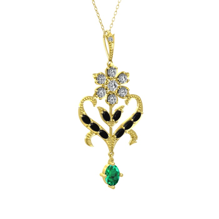 Beyaz zirkon, siyah zirkon ve yeşil kuvars 8 ayar altın kolye (40 cm altın rolo zincir)