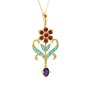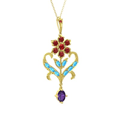 Garnet, akuamarin ve ametist 8 ayar altın kolye (40 cm altın rolo zincir)