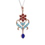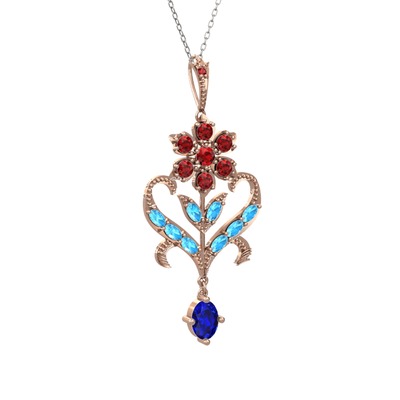 Garnet, akuamarin ve lab safir 925 ayar rose altın kaplama gümüş kolye (40 cm beyaz altın rolo zincir)
