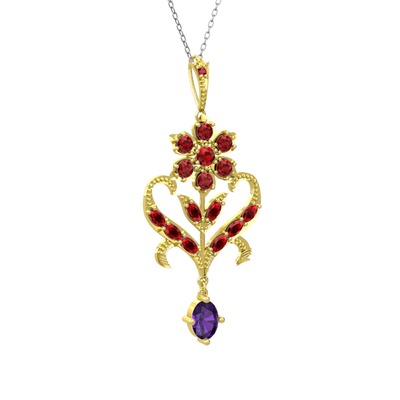 Garnet ve ametist 8 ayar altın kolye (40 cm beyaz altın rolo zincir)