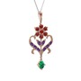 Garnet, ametist ve yeşil kuvars 14 ayar rose altın kolye (40 cm beyaz altın rolo zincir)