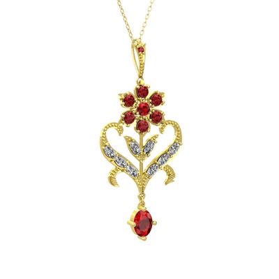 Garnet ve beyaz zirkon 8 ayar altın kolye (40 cm altın rolo zincir)