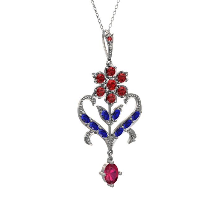 Garnet, lab safir ve rodolit garnet 14 ayar beyaz altın kolye (40 cm beyaz altın rolo zincir)