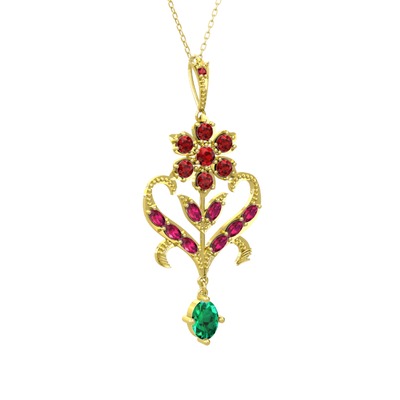 Garnet, rodolit garnet ve yeşil kuvars 8 ayar altın kolye (40 cm gümüş rolo zincir)