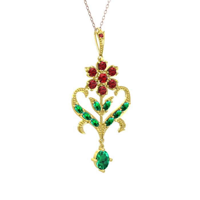 Garnet ve yeşil kuvars 8 ayar altın kolye (40 cm rose altın rolo zincir)