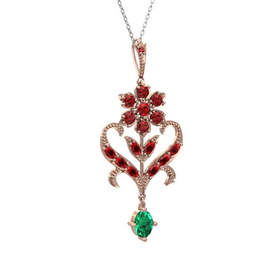 Garnet ve yeşil kuvars 8 ayar rose altın kolye (40 cm beyaz altın rolo zincir)