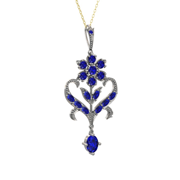 Lab safir 14 ayar beyaz altın kolye (40 cm gümüş rolo zincir)