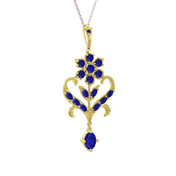 Lab safir 8 ayar altın kolye (40 cm rose altın rolo zincir)
