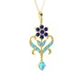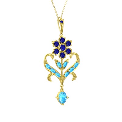 Lab safir ve akuamarin 8 ayar altın kolye (40 cm gümüş rolo zincir)