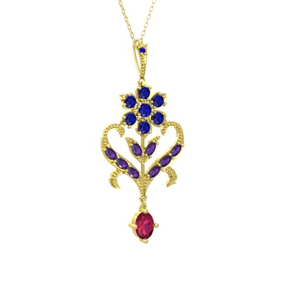 Lab safir, ametist ve rodolit garnet 8 ayar altın kolye (40 cm altın rolo zincir)