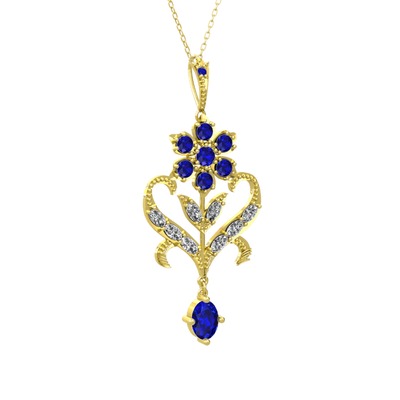 Lab safir ve beyaz zirkon 8 ayar altın kolye (40 cm altın rolo zincir)