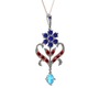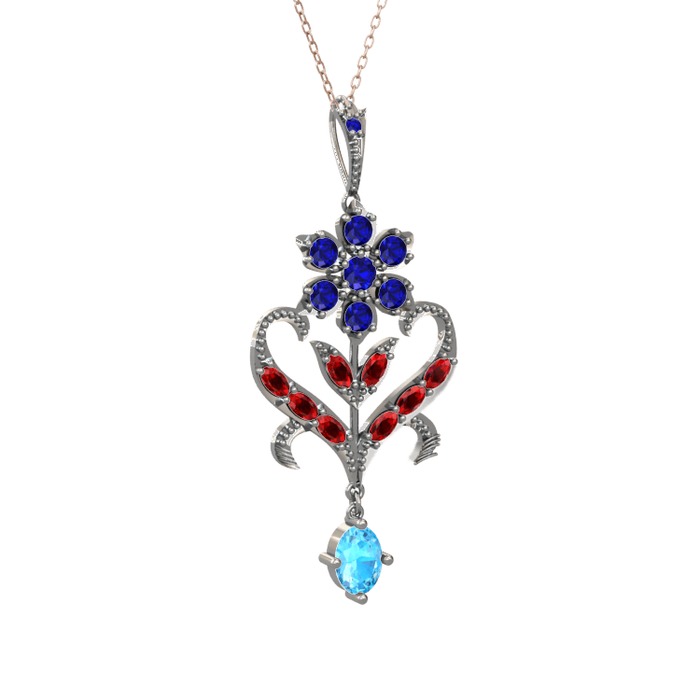 Lab safir, garnet ve akuamarin 14 ayar beyaz altın kolye (40 cm rose altın rolo zincir)