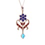 Lab safir, garnet ve akuamarin 14 ayar rose altın kolye (40 cm gümüş rolo zincir)