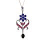 Lab safir, rodolit garnet ve siyah zirkon 14 ayar beyaz altın kolye (40 cm rose altın rolo zincir)