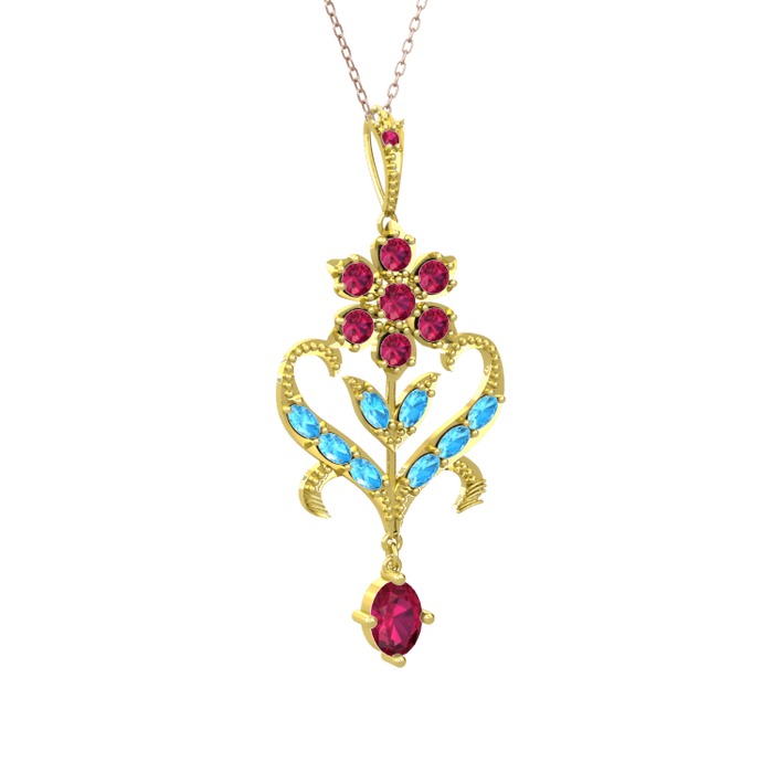 Rodolit garnet ve akuamarin 14 ayar altın kolye (40 cm rose altın rolo zincir)