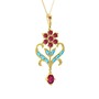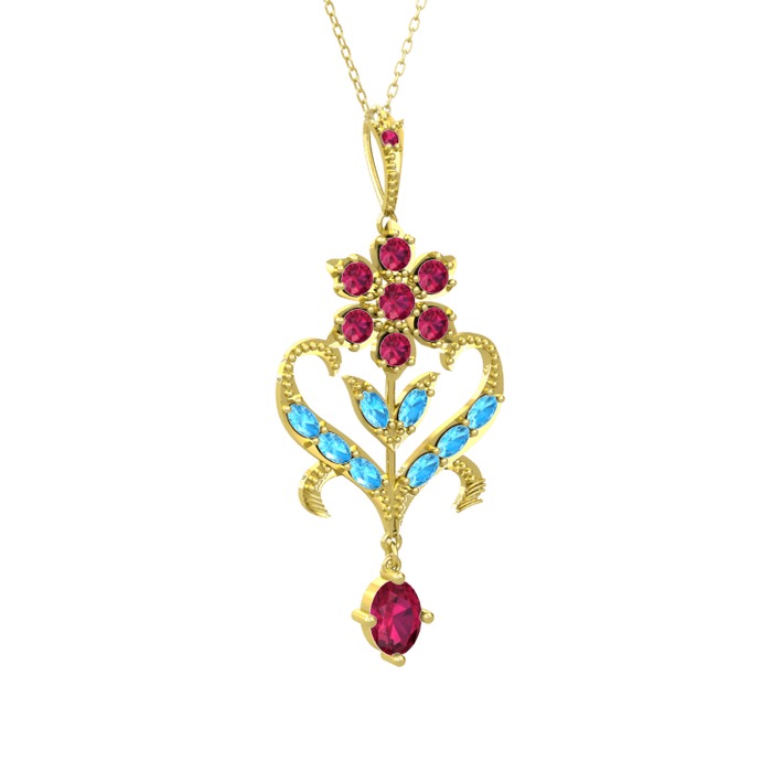 Rodolit garnet ve akuamarin 8 ayar altın kolye (40 cm gümüş rolo zincir)