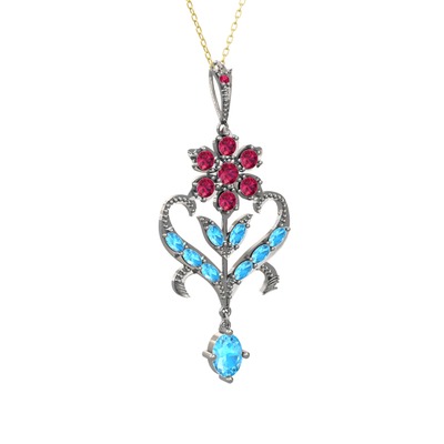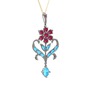 Rodolit garnet ve akuamarin 8 ayar beyaz altın kolye (40 cm gümüş rolo zincir)
