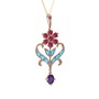Rodolit garnet, akuamarin ve ametist 8 ayar rose altın kolye (40 cm altın rolo zincir)