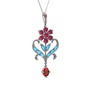 Rodolit garnet, akuamarin ve garnet 14 ayar beyaz altın kolye (40 cm gümüş rolo zincir)