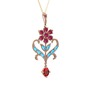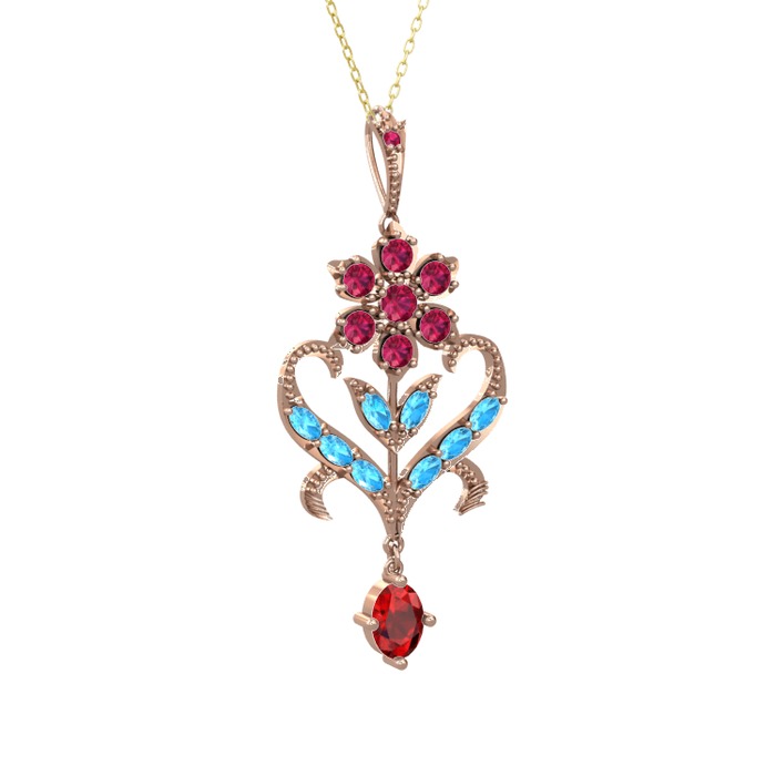 Rodolit garnet, akuamarin ve garnet 8 ayar rose altın kolye (40 cm altın rolo zincir)