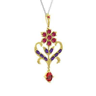 Rodolit garnet, ametist ve garnet 14 ayar altın kolye (40 cm gümüş rolo zincir)